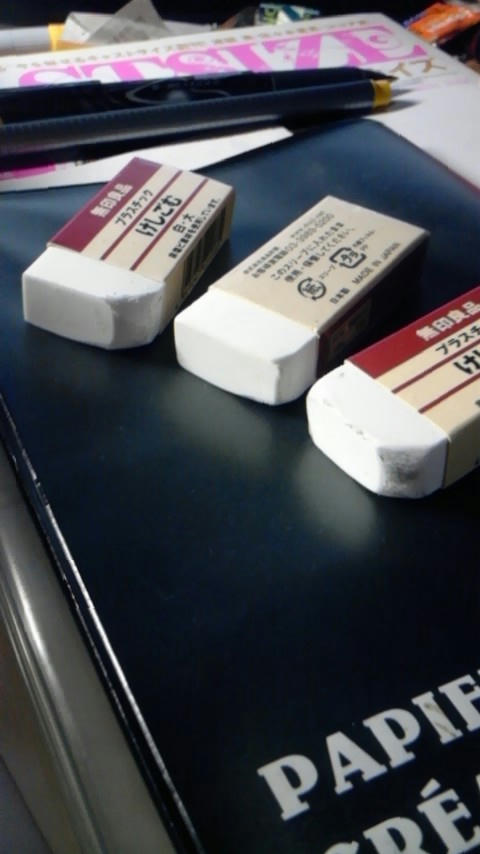 画像は同じくらいしか使ってない消しゴムが3つもあった…というやるせなさです。